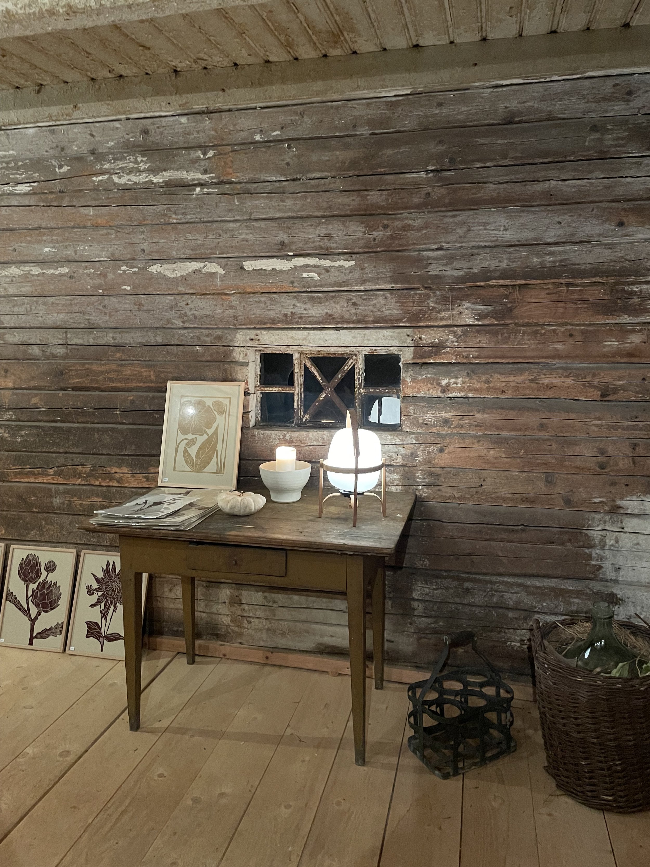 kolleksjon med linoleumstrykk. Printene ble solgt på markeder og på kurs hos Haugerud Hage.